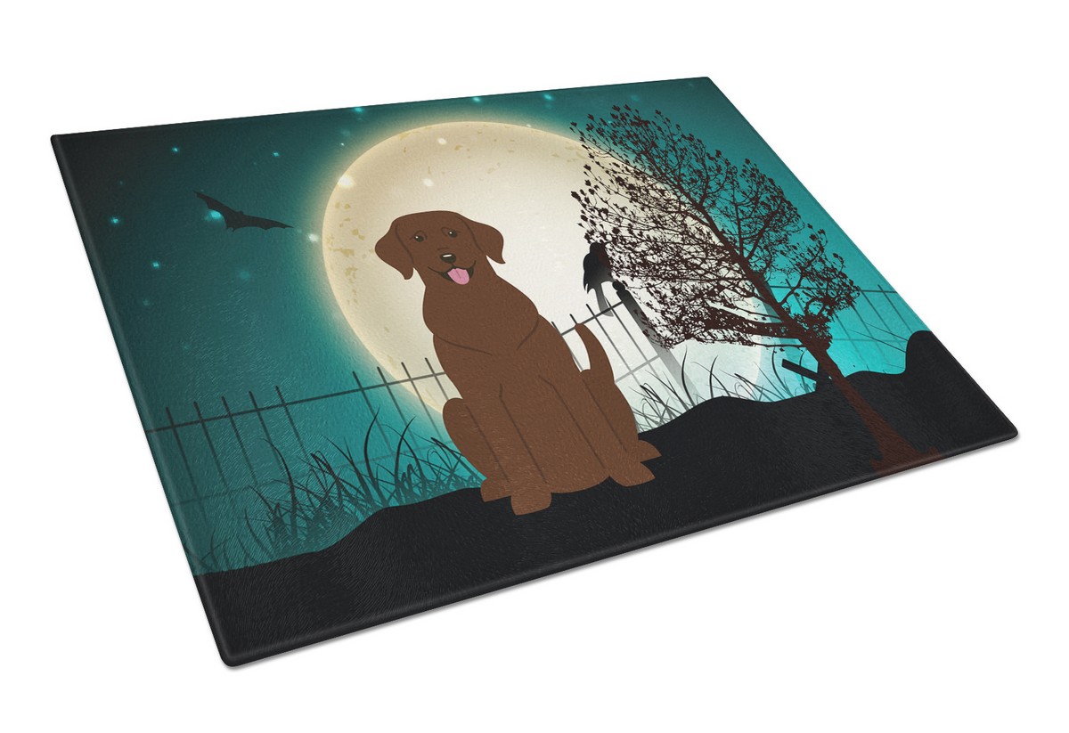 Caroline's Treasures BB2246LCB Halloween Scary Chocolate Labrador Glass Cutting Board Large Decorative Tempered Glass Kitchen Cutting and Serving Board Large Size Chopping Board