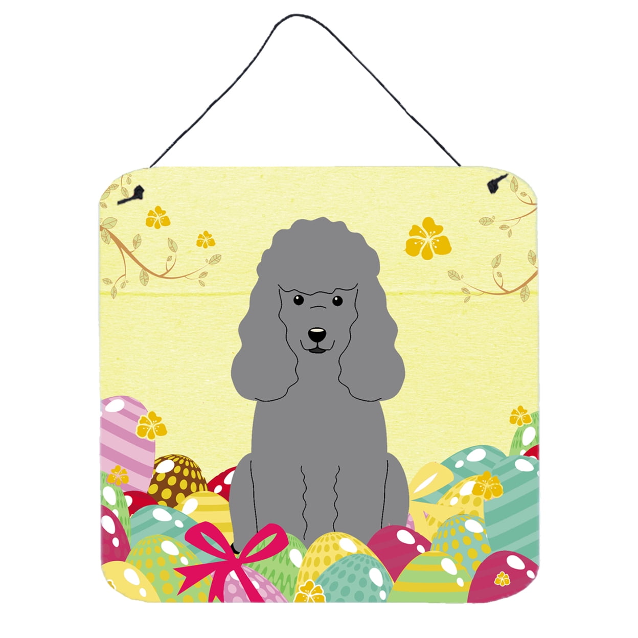 Caroline's Treasures BB6068DS66 Easter Eggs Poodle Silver Wall or Door Hanging Prints Aluminum Metal Sign Kitchen Wall Bar Bathroom Plaque Home Decor, 6x6, Multicolor