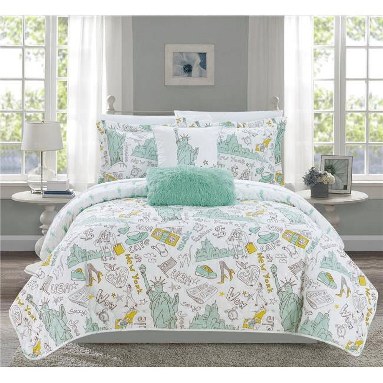 Chic Home BQS15013-US 4 Piece Stillwell Reversible Quilt Set, Green, Gold & White - Twin & Twin XL Size