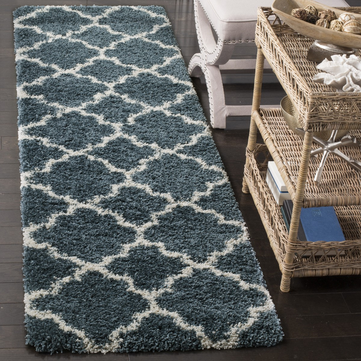 SAFAVIEH Hudson Shag Collection Runner Rug - 2'3" x 6', Slate Blue & Ivory, Moroccan Trellis, Non-Shedding & Easy Care, 2-inch Thick Ideal for High Traffic Areas in Living Room, Bedroom (SGH282L)