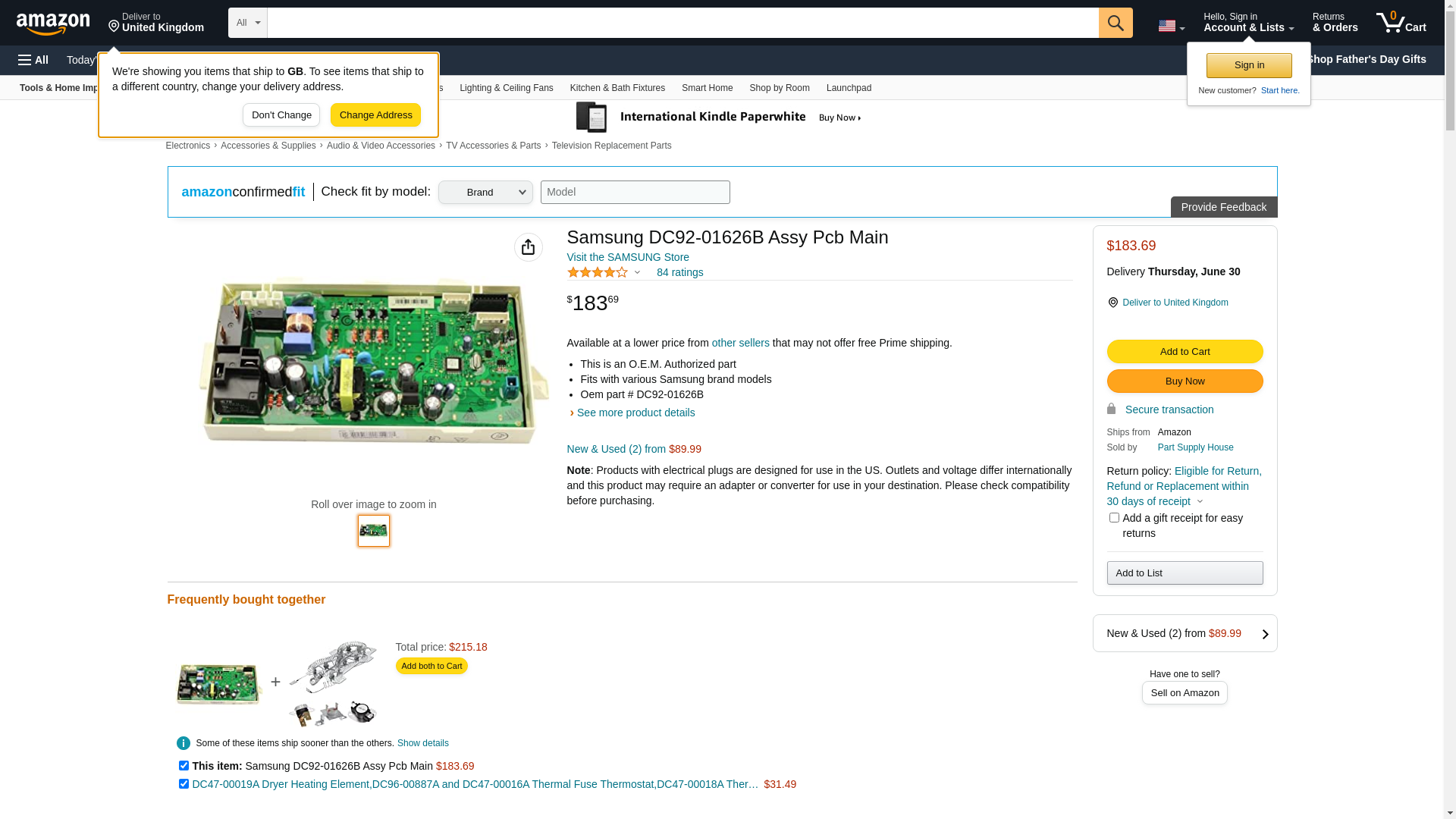 ![]() tvserviceparts.com | DC92-01626B | 1 | 1 | 1 @ $223.11 | |