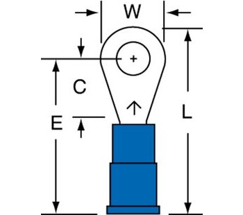 Ring Terminal, Blue, Butted, 16-14, PK1000