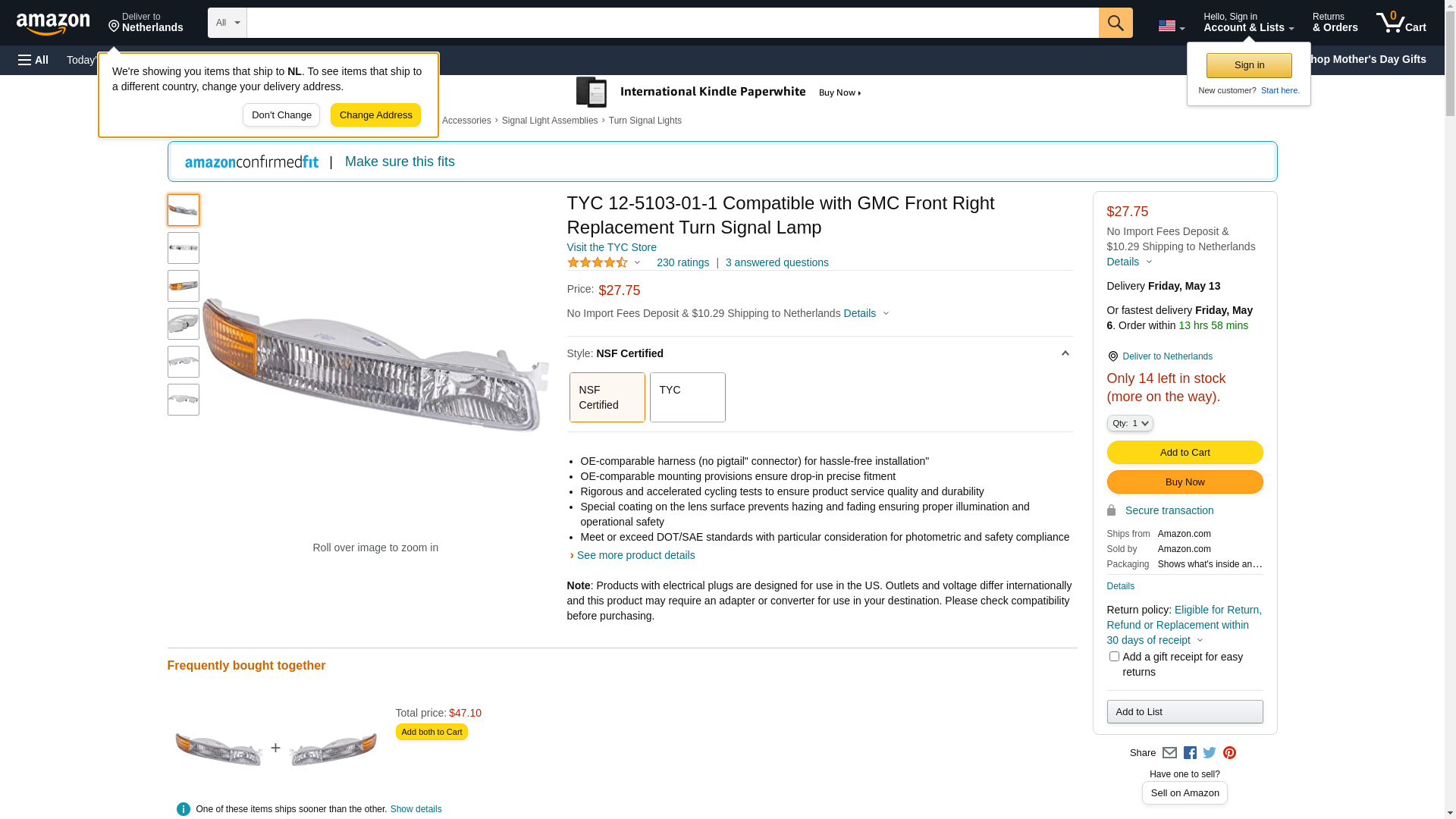 TYC 12-5103-01-1 Compatible with GMC Front Right Replacement Turn Signal Lamp