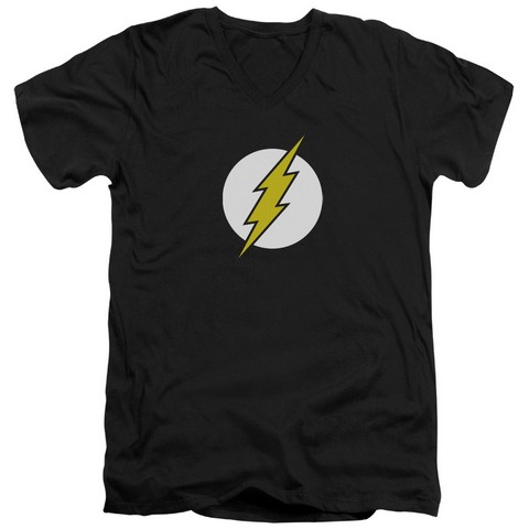 Trevco Dc-Flash Logo - Short Sleeve Adult 30-1 V-Neck Tee - Black, Medium