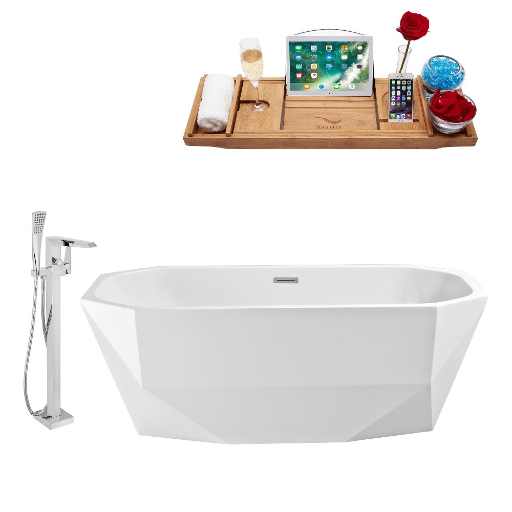 STREAMLINE NH620-100 63 INCH WHITE FREESTANDING TUB, TRAY AND FAUCET SET