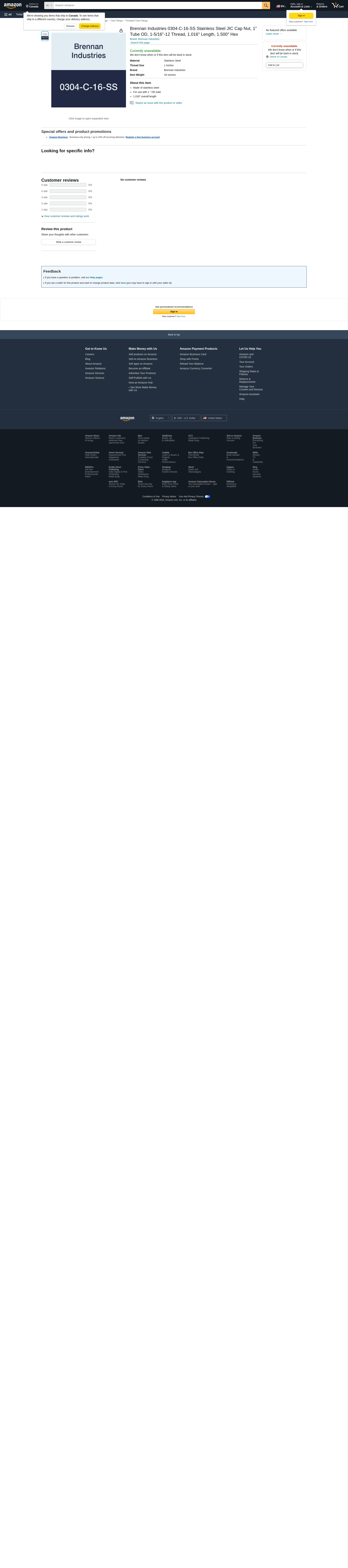 Brennan Industries 0304-C-16-SS Stainless Steel JIC Cap Nut, 1" Tube OD, 1-5/16"-12 Thread, 1.016" Length, 1.500" Hex