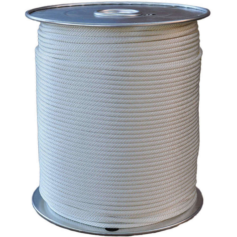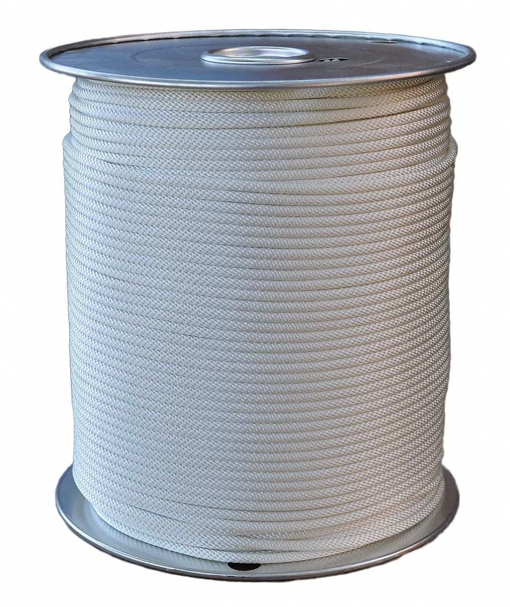 ' Rope, Rope Material Polyester, Rope Construction Solid Braid, Rope Dia. 3/16 In., Length 500 ft., Working Load Limit 160 lb., Tensile Strength 800 lb., Package Type Spool, White, Rope Performance Property Light Duty '