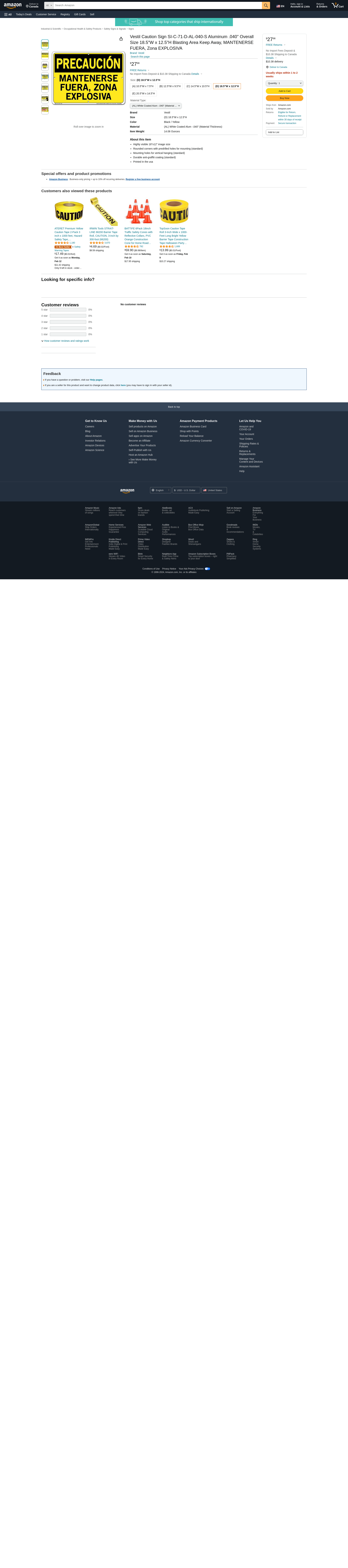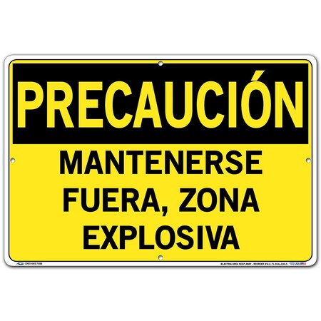 Vestil Caution Sign SI-C-71-D-AL-040-S Aluminum .040" Overall Size 18.5"W x 12.5"H Blasting Area Keep Away, MANTENERSE FUERA, Zona EXPLOSIVA
