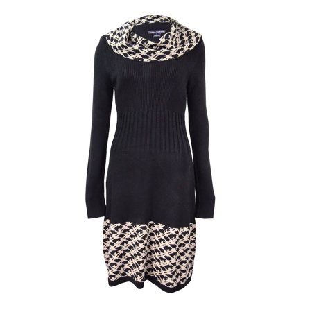 Jessica Howard Women's Petite Cowl-Neck Sweater Dress (PS, Black/Tan)
