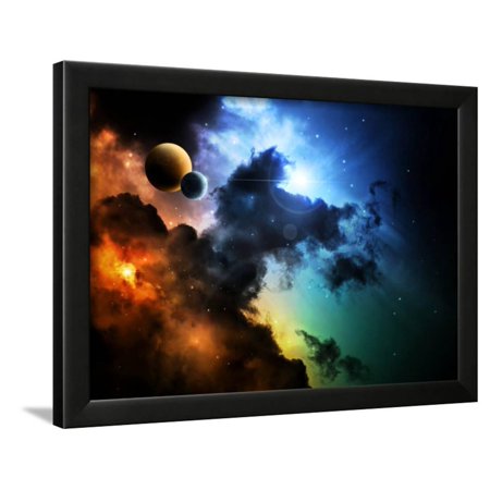 <ul> <li>Title: Fantasy Deep Space Nebula with Planet</li> <li>Artist: HomeArt</li> <li>Paper Type: Art Print</li> <li>Product Type: Framed Art Print</li> <li>Framed in SOHO Black</li> <li>Arrives ready-to-hang for fast, simple installation</li> <li>Framed Size: 22x17 in.</li> <li>Handcrafted in the USA</li> </ul>