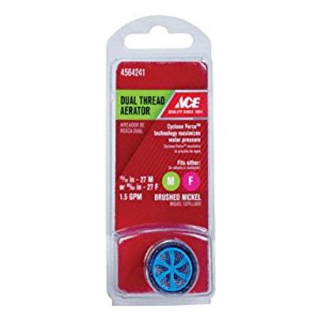 This 1.5 GPM Faucet Aerator has new Innovative Features. It has Cyclone Technology which reduces water consumption without sacrificing water pressure. This Faucet Aerator is Water Sense Certified and can save you up to 30% water as compared to using the standard 2.2 GPM Aerator.Find the DUAL THREAD AERATOR BN at Ace.