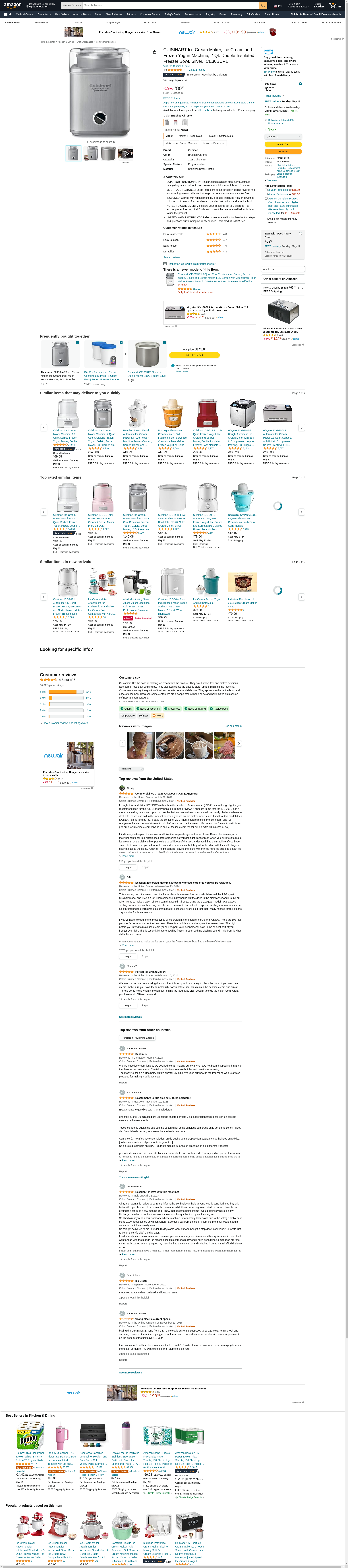 CUISINART Ice Cream Maker, Ice Cream and Frozen Yogurt Machine, 2-Qt. Double-Insulated Freezer Bowl, Silver, ICE30BCP1