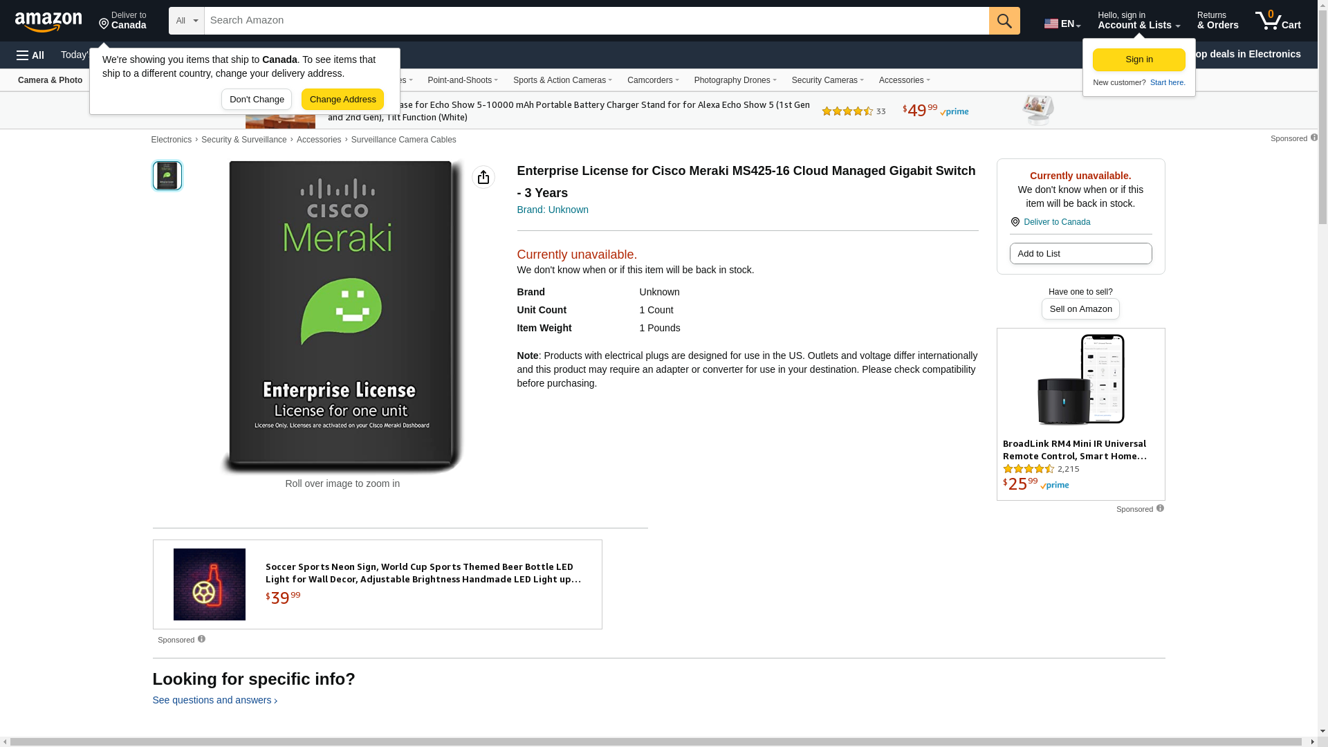 - Cisco Meraki Enterprise 3-Year Subscription license + 3-Year Enterprise Support for 1 x Meraki MS425-16-HW switch