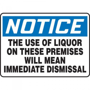 The Use Of Liquor On These Premises Will Mean Immediate Dismissal 10" x 14" - MACC808VP - Jendco Safety Supply