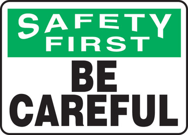 Order MGNF993XV by Accuform Adhesive Dura-Vinyl Sign "Safety First Be Careful" - US Mega Store