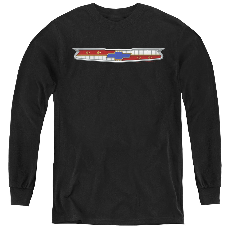 Trevco CHV222-YL-4 Chevrolet & 56 Bel Air Emblem-Youth Long Sleeve Tee, Black - Extra Large