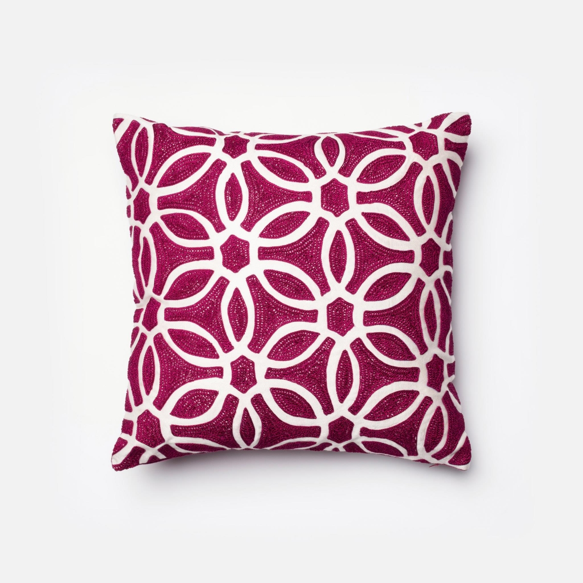 Loloi Loloi-PSETP0135XMWHPIL1-Magenta Decorative Accent Pillow 18" x 18" Cover w/Poly, 18" x 18", Magenta/White