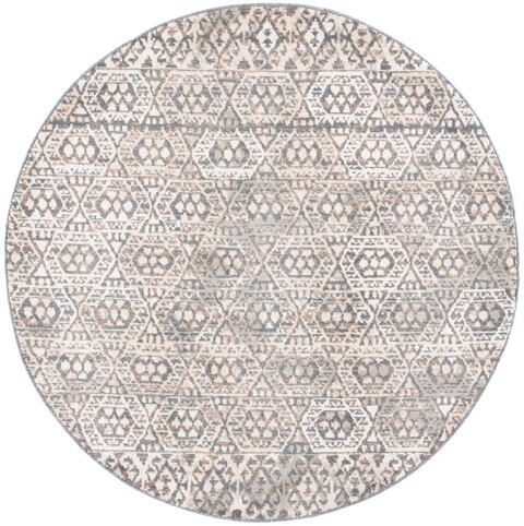 Safavieh PYR260A-7R 6 ft. 7 in. x 6 ft. 7 in. Pyramid Global Round Power Loomed Rug - Ivory & Charcoal