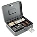 - DIMENSIONS: This cash box with lock is 11.81” (29.99 cm) wide, 9.43” (23.95 cm) deep, and 3.18” (8.07 cm) tall. It comes with a secure cam lock with two standard keys.