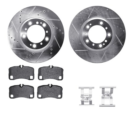 Dynamic Friction Company Rear Brake Rotors-Drilled and Slotted-Silver with 5000 Advanced Brake Pads includes Hardware 7512-02031