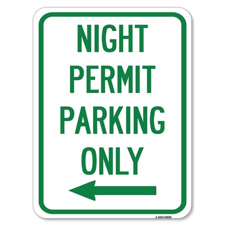 Night Permit Parking Only With Left Arrow Heavy-Gauge Aluminum Rust Proof Parking Sign