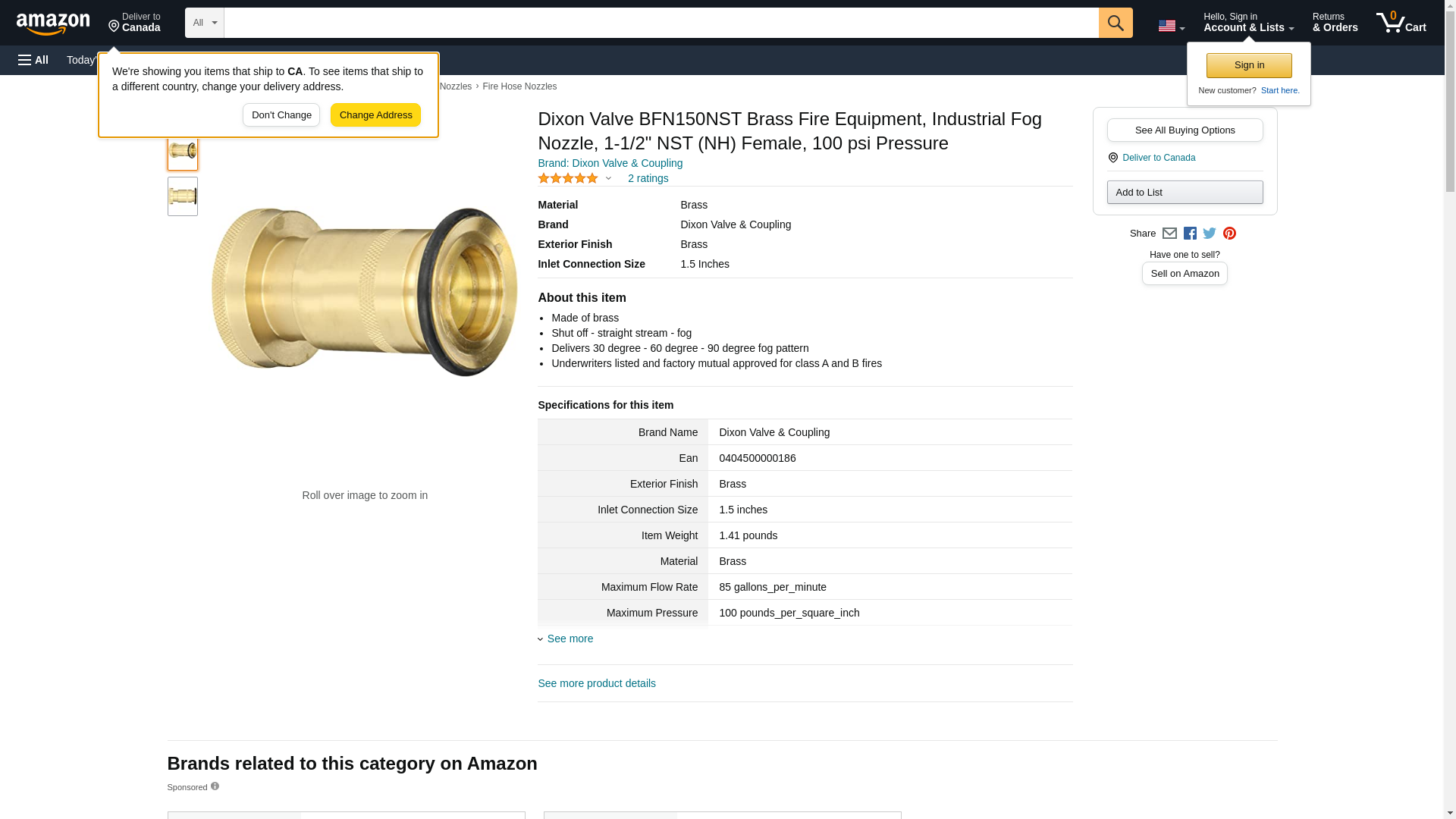 Dixon Valve BFN150NST Brass Fire Equipment, Industrial Fog Nozzle, 1-1/2" NST (NH) Female, 100 psi Pressure