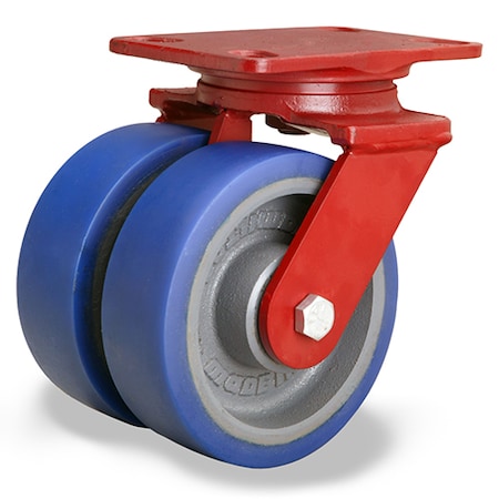 Hamilton Heavy Service Dual Wheel Caster - 6"Dia.X2"W Wheel - 1920-Lb. Capacity - Poly-Soft Polyurethane Wheel - Tapered Bearing - Swivel