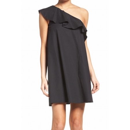 NSR NEW Black Womens Size Large L One-Shoulder Ruffle Shift Dress