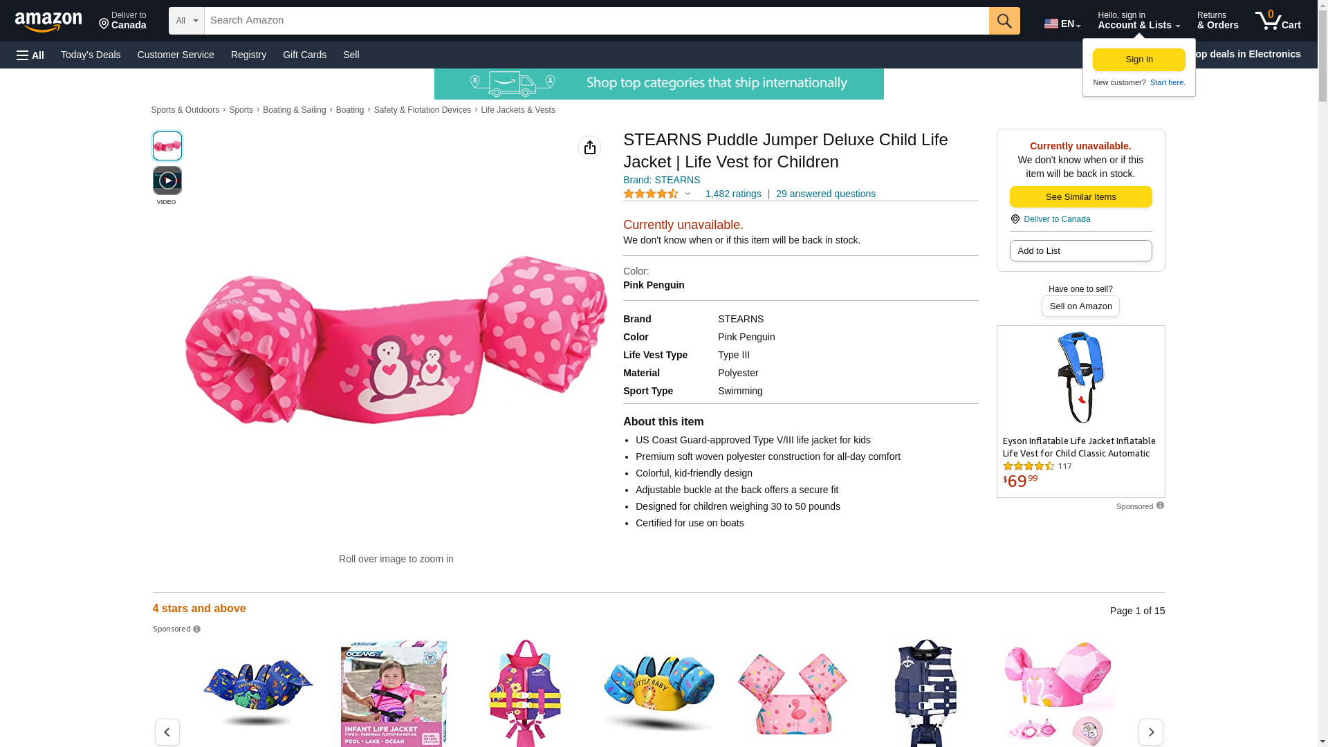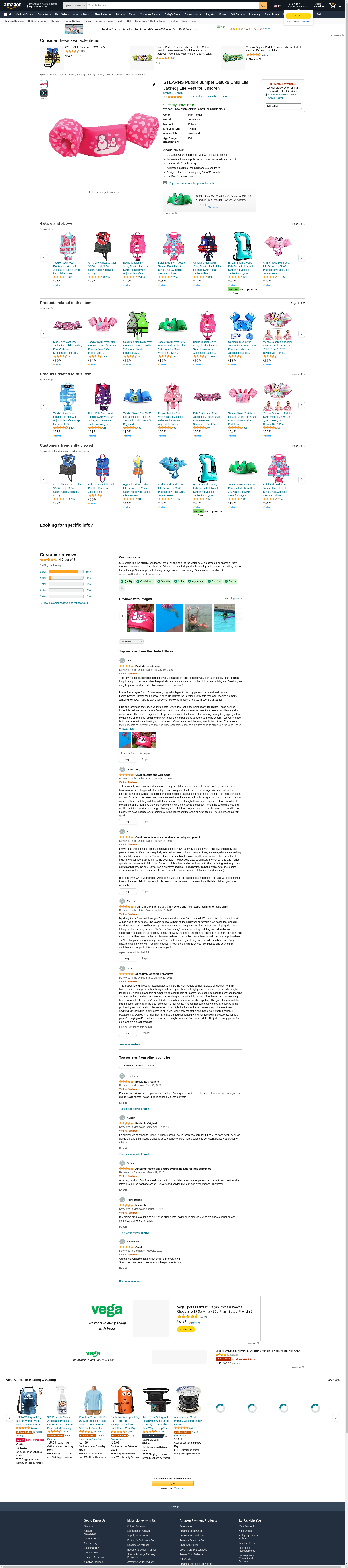 STEARNS Puddle Jumper Deluxe Child Life Jacket, Pink Penguin