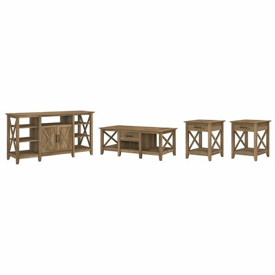 Bush Furniture Key West Tall TV Stand with Coffee Table and 2 End Tables, Reclaimed Pine, Screens up | Quill.com