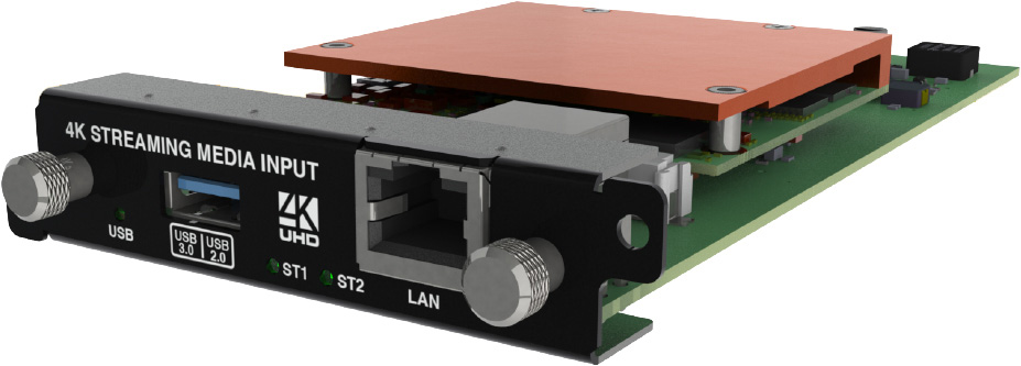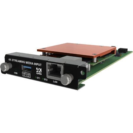 The TVOne <b>CM-AVIP-IN-1USB-1ETH-128</b> Streaming Media Input Module provides CORIOmaster systems with the ability to bring 2 network streams up to 1080p 60 @ 25mbs in to just 1 slot with 128GB. As well as playback of 4k UHD or 2x 1080p60 video files. The Streaming Media Input Module also supports still images with full 4K rendering. And with at least 40mbs of total bandwidth you can easily provide high quality content to your video wall and projector edge-blend.</p><p>The Dual stream input module allows you to decode and play media and images from a USB drive or internal storage, and video streams from IP sources. Sources include streaming server, and from any device when used with an IP encoder, such as the Magenta™ Encoder-100.</p>