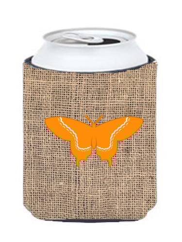 Carolines Treasures BB1030-BL-OR-CC Butterfly Burlap and Orange Can or Bottle Hugger
