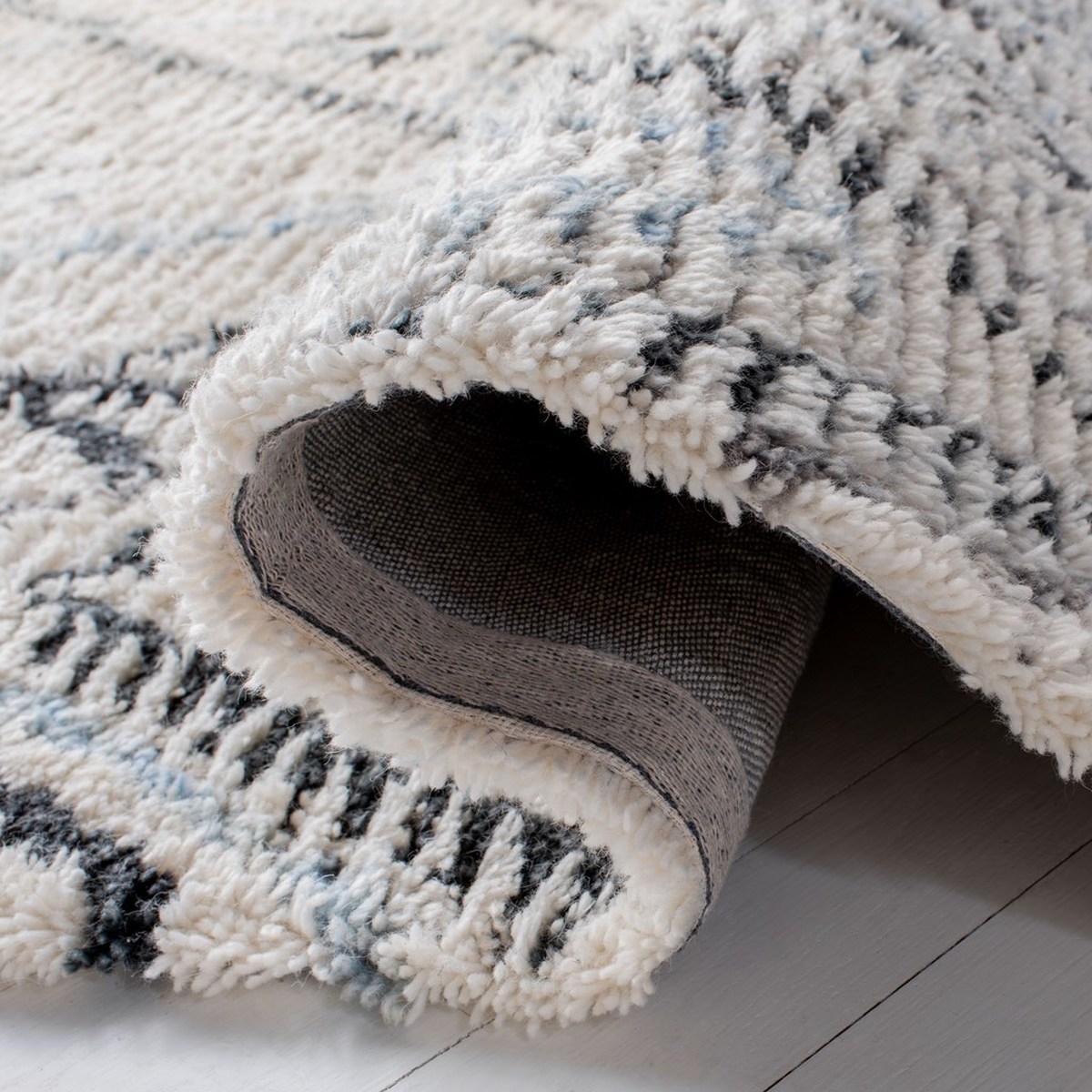 Safavieh CSB637A-5 5 x 8 ft. Hand Tufted Shag & Flokati Casablanca Medium Rectangle Rug, Grey & Ivory
