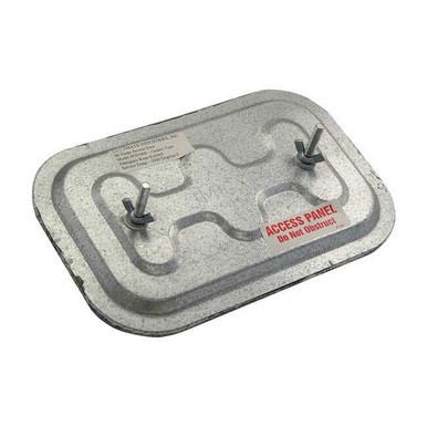 ' Duct Access Door, Rectangular, Door Width 11 In., Door Height 7 In., Material Steel, Finish Galvanized, Rough Opening Width 10 In., Rough Opening Height 6 In., Temp. Range 2300 Degrees max., Hinges None, Latch Thumbscrews, Standards NFPA 96, Includes Peel and Stick Template '