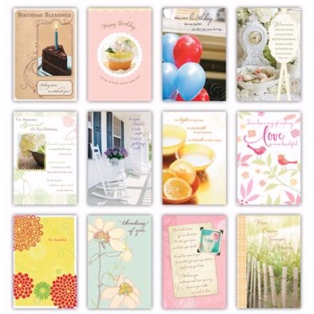 <p>Be ready for any occasion with this box of All Occasion greeting cards from DaySpring. Details: Festive artwork and photographs Christian sentiments KJV Scripture quotation 12 cards and envelopes. We take pride in presenting the world with the products and resources that glorify our Lord, Jesus Christ. Our exclusive product line includes Books for kids and adults, Fashion accessories, Home decors and stationary items. We are in touch with your needs and strive to bring the Christian faith through our resources. We make the most creative products which represent the love for Christ. </p> <b>Features</b> <ul> <li>Box of 12</li> <li>Card-Boxed-All Occasion Variety-KJV</li> <li>Deliver elite quality in all our products</li> <li>Evokes confidence within you</li> <li>Products come with gospel message of hope and god?s love</li> </ul> <b>Set Includes:</b> <ul> <li>1-Anniversary, 4-Birthday, 3-Get Well, 1-Sympathy, 2-Thinking of You, 1-Thank You. </li> </ul> <b>Specifications</b> <ul> <li><b>Approximate Size:</b> 4.5 x 6.5 in. </li> </ul>- SKU: ANCRD82402