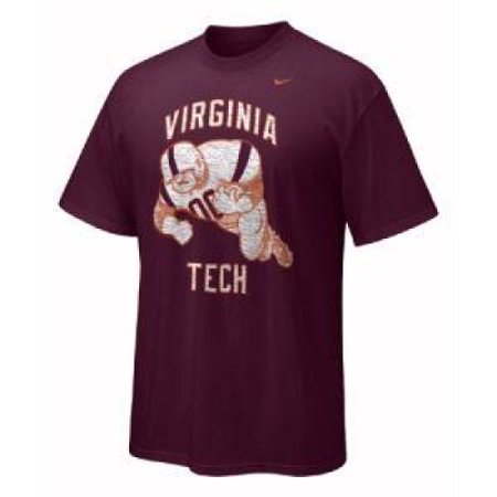 100% cotton short-sleeve tee by Nike. Has school name and football player graphic in distressed screen print on front, team logo at back neck, and a Nike swoosh on upper left chest.