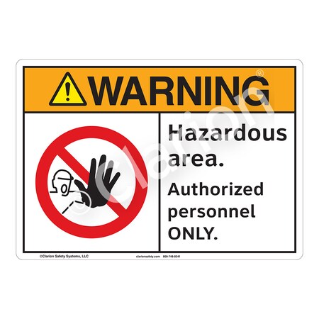 <p><strong>Word Message: </strong><br />Hazardous area. Authorized personnel ONLY. </p><p><strong>Description: </strong><br />Clarion Safety Systems brings you high quality warning hazardous area safety signs (ITEM# F1118-) which are produced on premium plastic material and are expertly designed to meet your restricted access sign needs. </p><p><strong>Material Information:</strong></p> <ul> <li><strong>Material</strong>: (S4) Outdoor Weather Tuff Aluminum</li> <li><strong>Base Materials</strong>: .040" Rigid White Aluminum</li> <li><strong>Overlaminate</strong>: 3M .003 Ultra-Clear Weather Tuff UV resistant</li> <li><strong>Mounting Option</strong>: Mounting holes</li> <li><strong>Application</strong>: Indoor/Outdoor</li> <li><strong>MaxTemp</strong> (F): 175</li> <li><strong>MinTemp</strong> (F): -40</li> <li><strong>Chemical Resistance</strong>: Excellent</li> <li><strong>UV Resistance</strong>: Excellent</li> <li><strong>Outdoor durability</strong>: Excellent</li> <li><strong>Storage Stability</strong>: Stable. Optimum storage conditions: 72 F @ 50% relative humidity</li> <li><strong>Expected Life Indoor</strong>: Long term</li> <li><strong>Expected Life Outdoor</strong>: 5 - 10 years (expected outdoor life may vary due to climatic conditions)</li> <li><strong>RoHS</strong>: No</li> <li><strong>CRoHS</strong>: No</li> <li><strong>REACH</strong>: No</li> </ul>