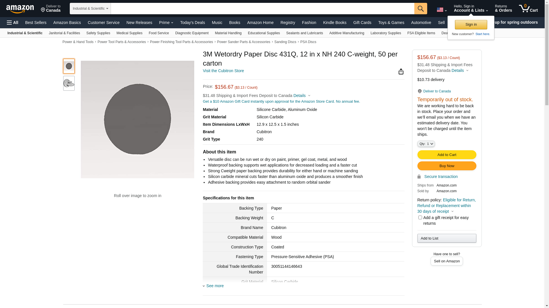 Cubitron II Wetordry Paper Disc 431Q, 12 in x NH 240 C-weight, 50 per carton