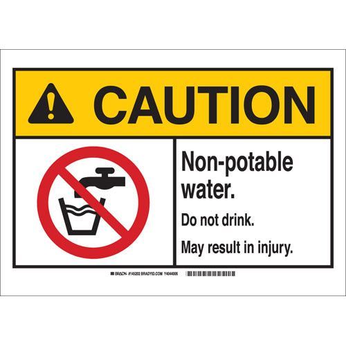 Brady 145199 CAUTION Non-Potable Water Do Not Drink May Result In Injury Sign - Premium Fiberglass - Black/Red/Yellow on White - 10 x 14