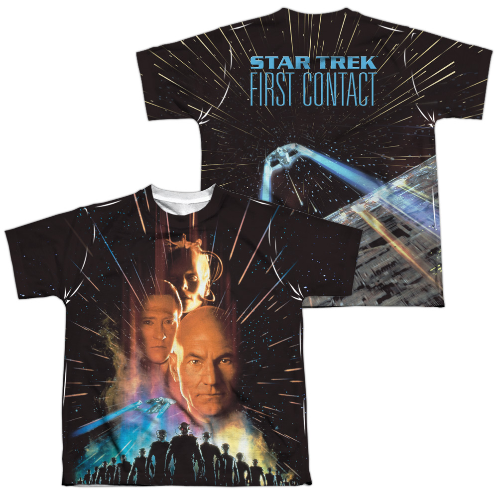 Trevco CBS1614FB-YTPP-3 Star Trek & Fist Contact Poster Front & Back Print Youth Polyster Crew Neck Short Sleeve T-Shirt