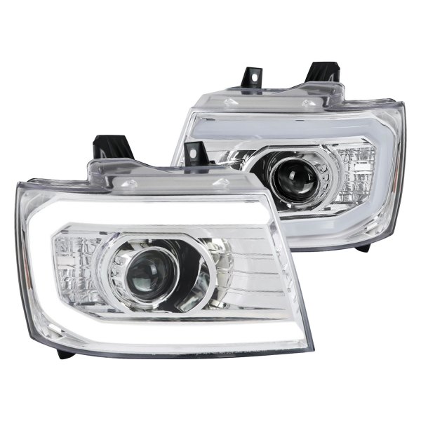 Spec-D Projector Headlights w/ LED C-Bars (Chrome Housing/Clear Lens) Chevrolet Tahoe | Suburban | Avalanche 2007-2014 | 2LHP-AVA07-G2-TM