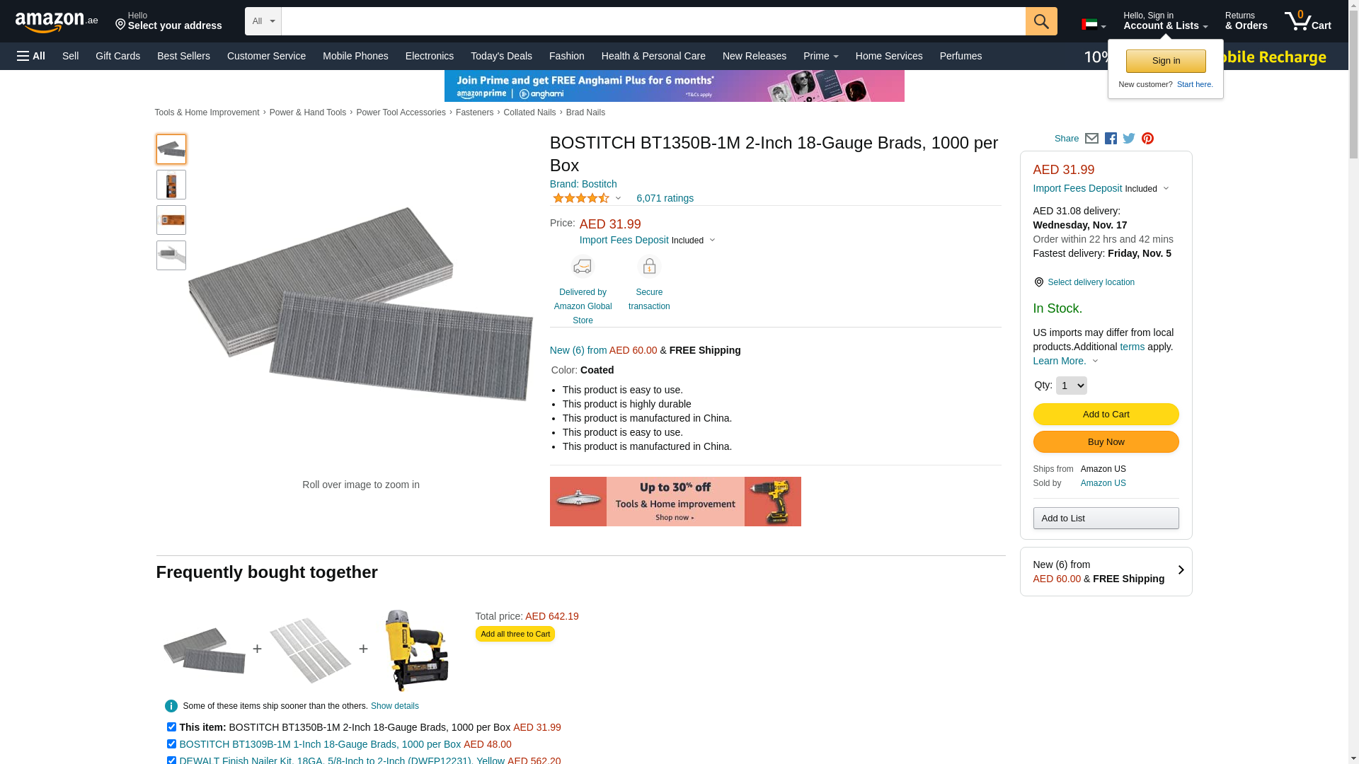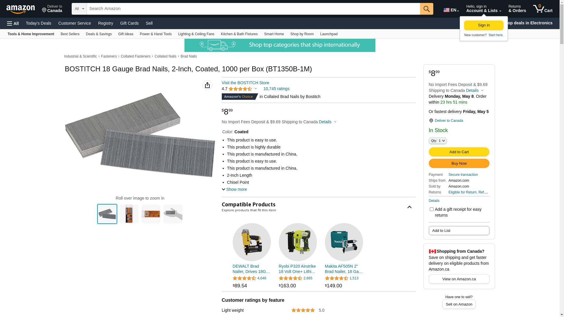 Bostitch Bt1350B-1M 1000 Pk 1000 Pack 2 inch 18-Gauge Brads