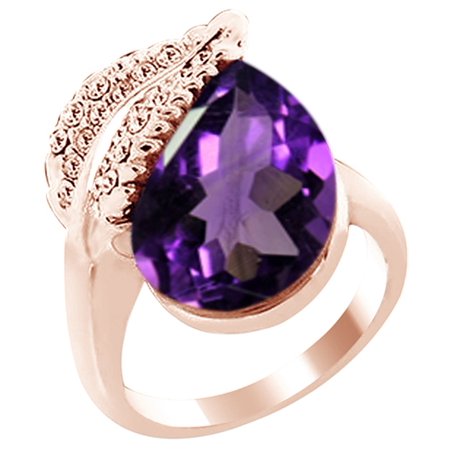 <ul> <li>Metal Type : 14k Rose Gold OVer Sterling Silver GUARANTEED, Authenticated with a 925 Stamp</li> <li>Gem Type :- Simulated Amethyst (Lab Created)</li> <li>Stone Shape :- Pear Shape</li> <li>Stone Setting type :- prongs</li> <li>Stone Clarity :- VVS1-VVS2, Stone Color :- Violet</li> </ul>
