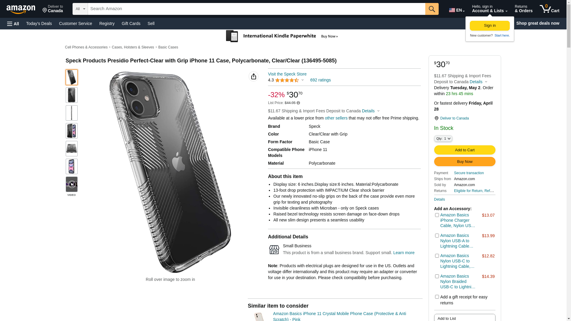 Speck Products Presidio Perfect-Clear with Grip IPhone 11 Case, Clear/Clear (136495-5085)