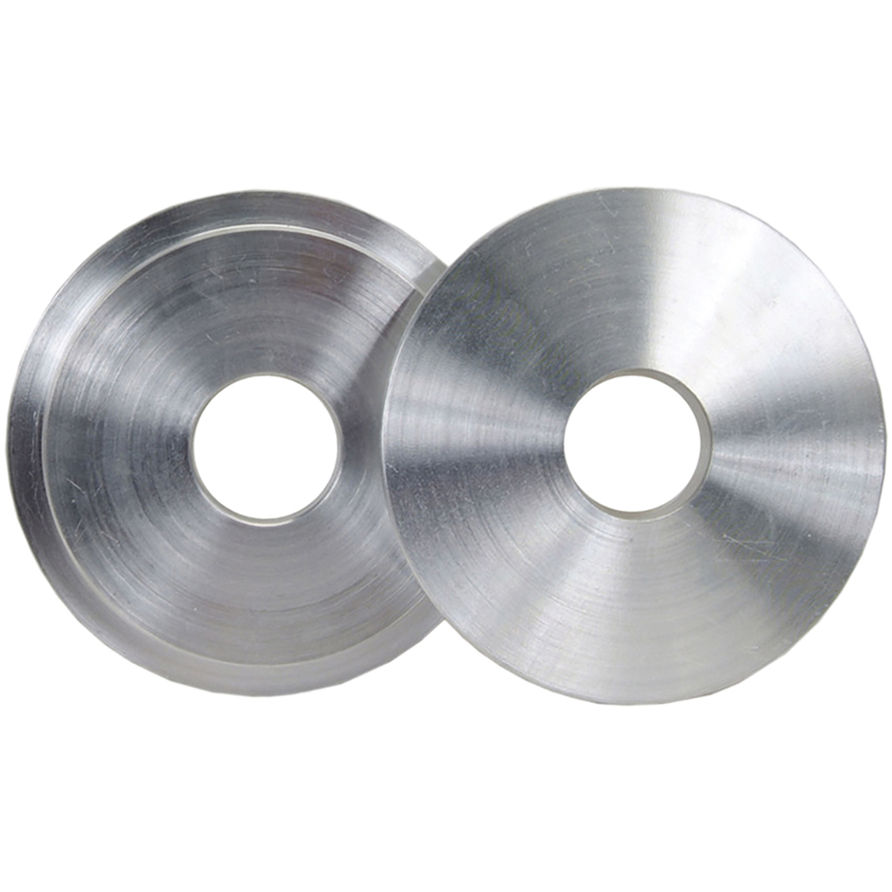 | Feature | Durable, aluminum one-piece design flanges with integrated contact washer^Snug fit; extended useable life^Bushing reduces hole size to 3" |