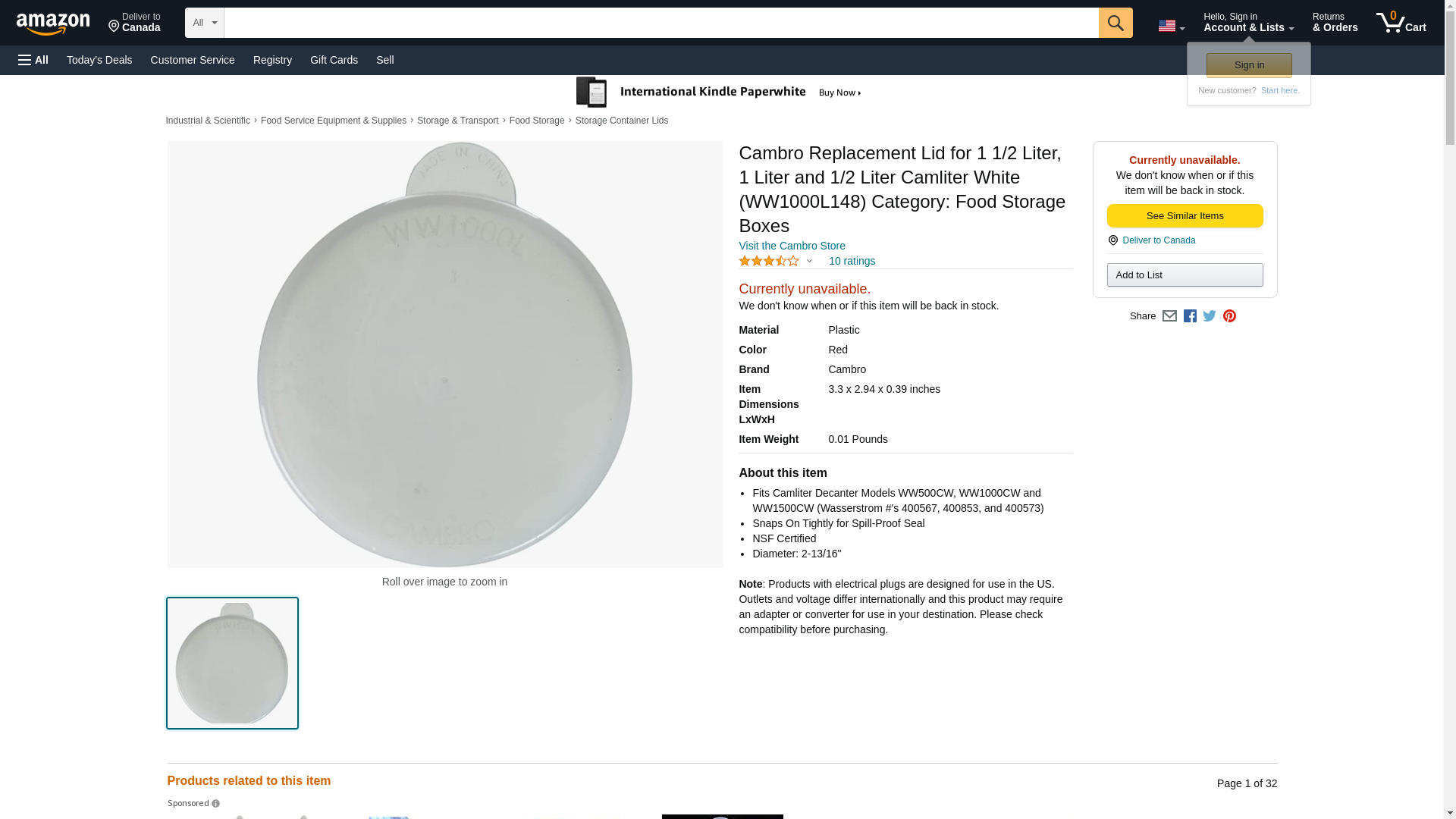 - Cambro - WW1000L148 - 1 1/2 1 1/2 L Camwear Camliter Replacement Lid