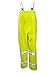 Yellow green, 14 mil PVC on polyester; snap fly front; silver reflective tape; Therm-O-Rad heat sealed seams; suspenders with quick release buckles; hook and loop take-up straps; meets ASTM D6413 standard; meets ANSI/ISEA 107 Class 3 standard.