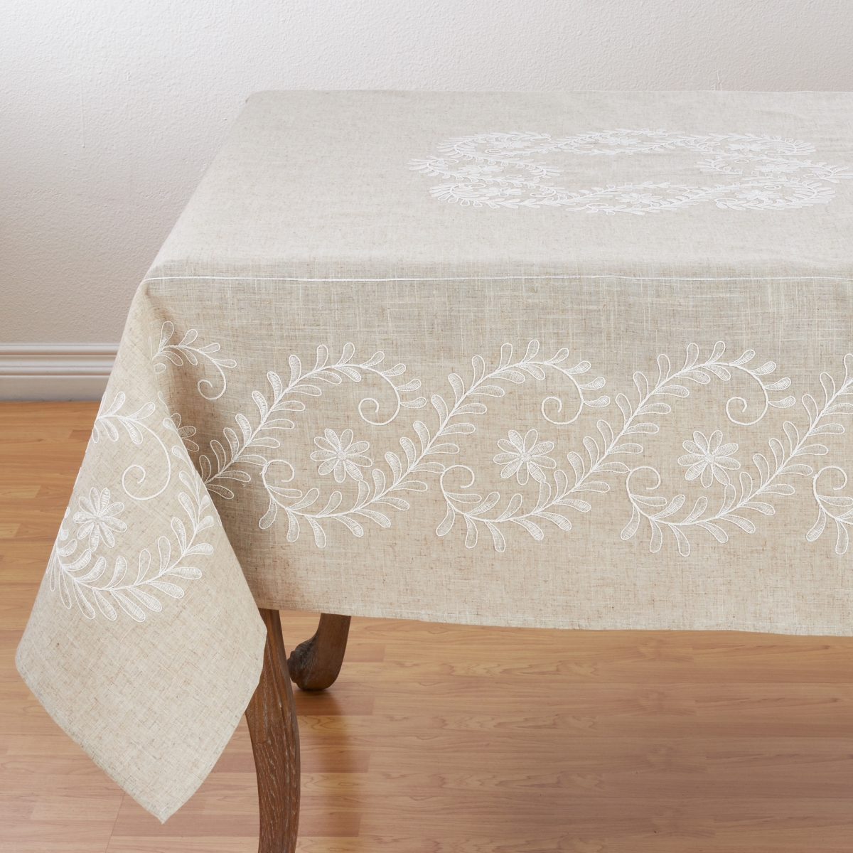SARO 2053.N67S 16 x 68 in. Embroidered Floral Tablecloth Natural