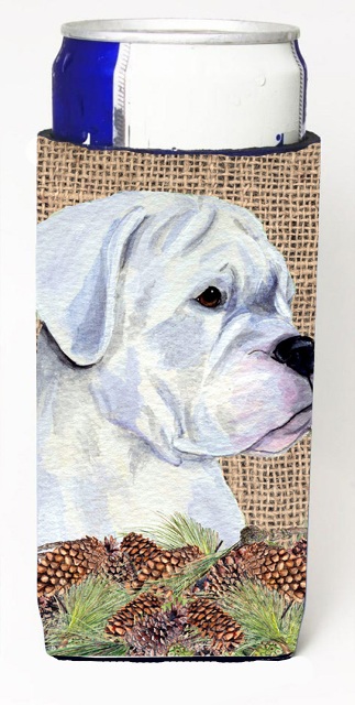 Carolines Treasures SS4098MUK White Boxer on Faux Burlap with Pine Cones Michelob Ultra bottle sleeves for slim cans 12