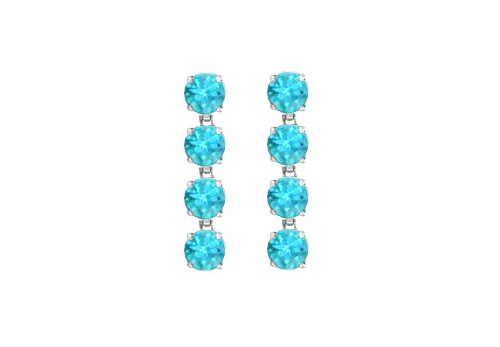 Fine Jewelry Vault UBER55W14BT Eight Carat Round Created Blue Topaz Drop Earrings in 14K White Gold Prong Setting